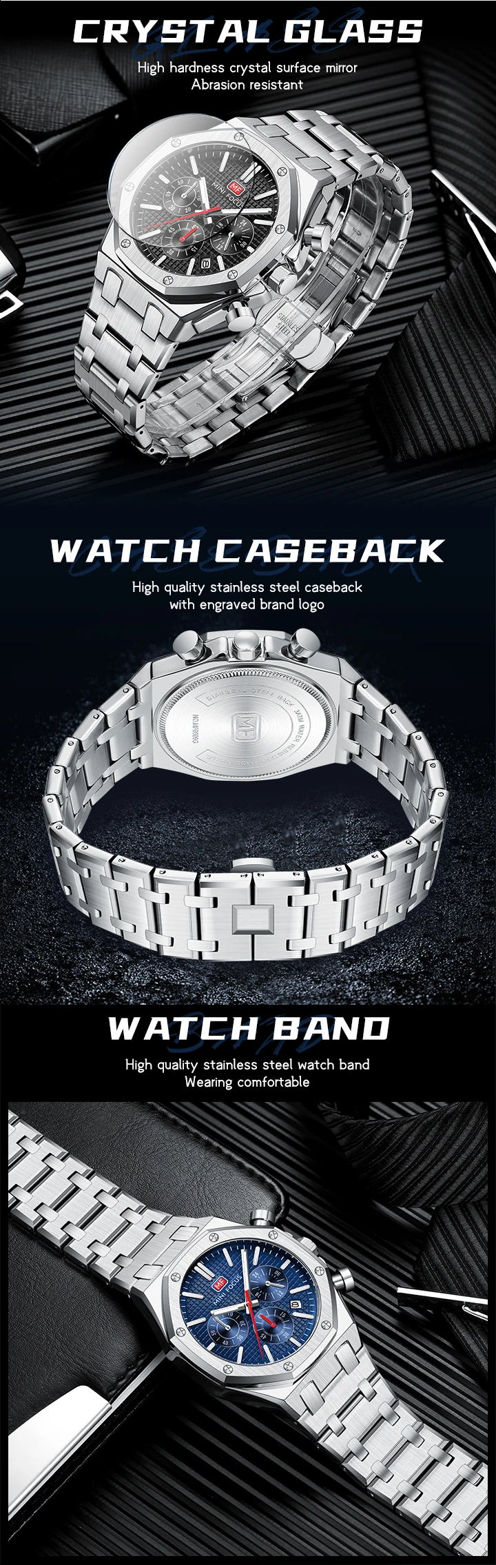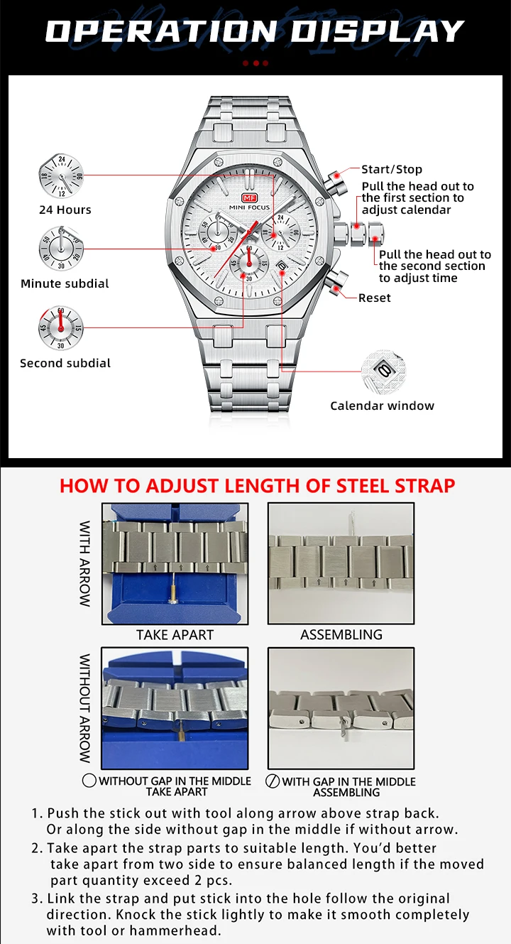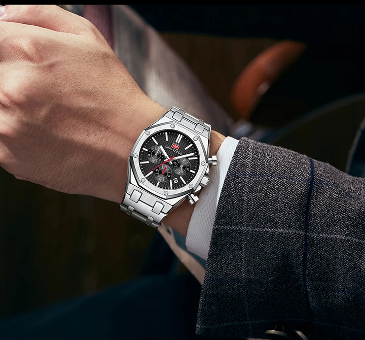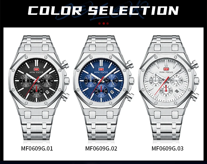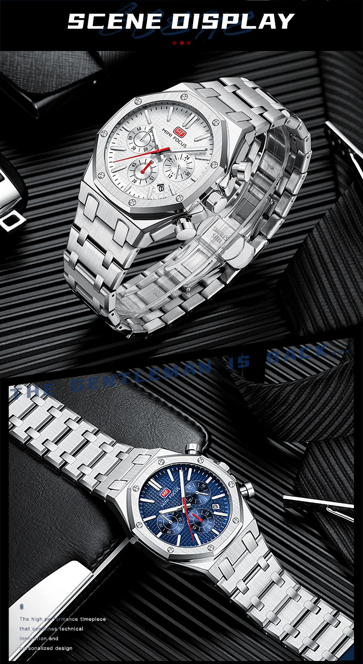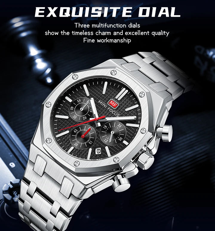 MINI FOCUS New Business Quartz Watch for Men Fashion Waterproof Chronograph Luminous Wristwatch with Stainless Steel Strap Date