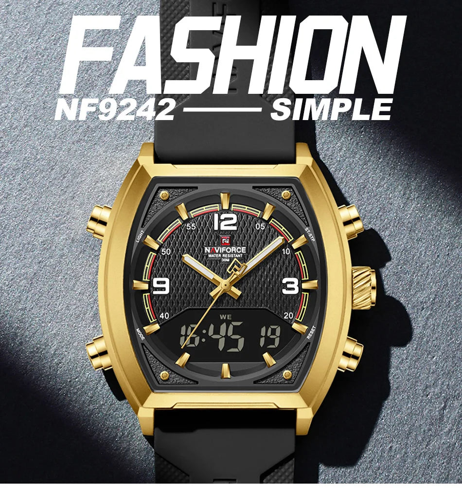 NAVIFORCE Men Sport Watches Dual Time Analog Digital Watch Quartz 30m Waterproof Watch Military Clock Sport 2025 Men Wristwatch