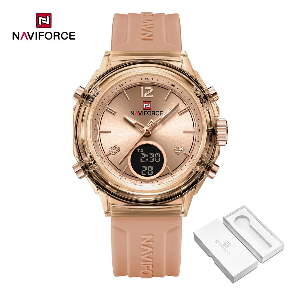 NAVIFORCE Top Brand Women's Watch Outdoor Sports Waterproof Watches Dual Time Display Quartz Wristwatches Rubber Digital Clock